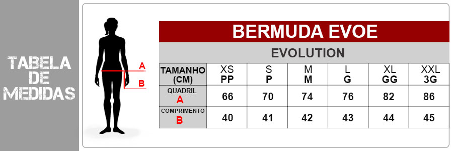 Fique por dentro das medidas da Bermuda Feminina EVOE Evolution: