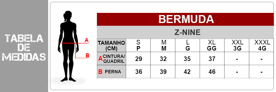 Quer saber qual a medida ideal para você da Bermuda Feminina Z-Nine Ride Vermelho? Confira: