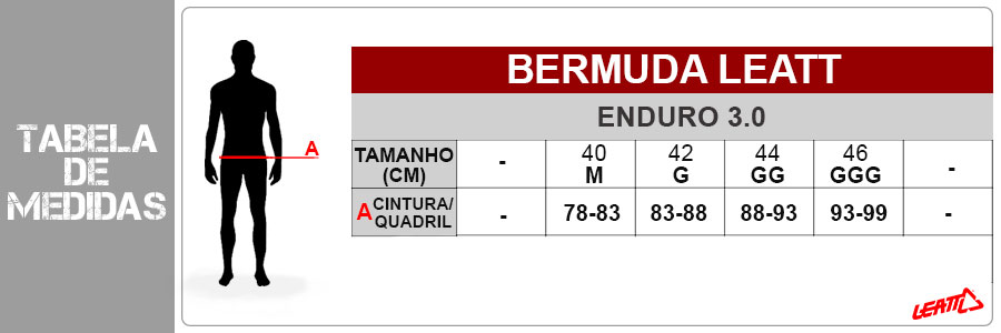 Qual a medida ideal para a Bermuda Leatt Enduro 3.0?