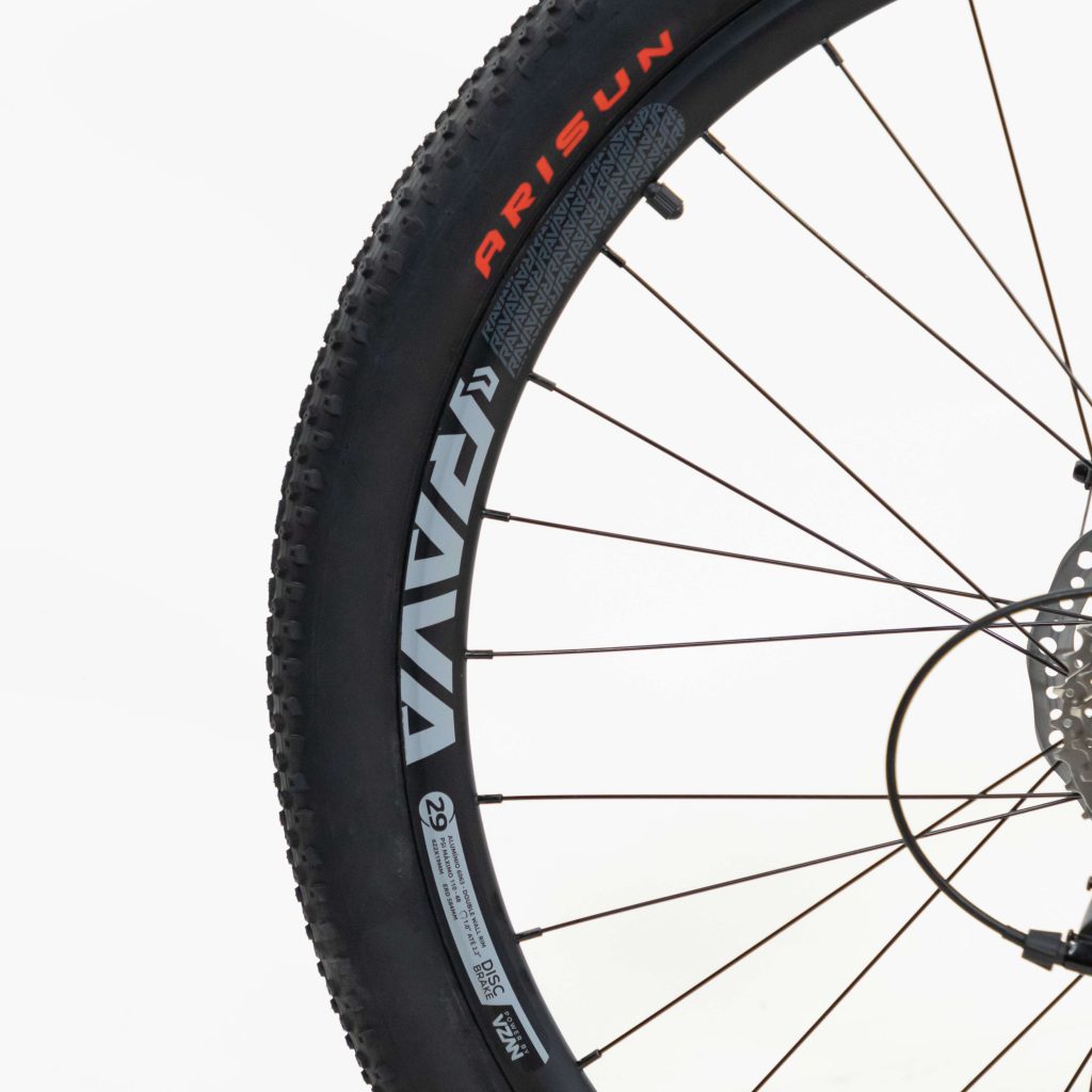 Bicicleta 29 Rava Pressure já vem equipada com pneus Arisun, que possuem 2,20mm de espessura e estilo misto, voltados para maior segurança ao pedalar em ambientes como estradões e asfaltos, auxiliando na diminuição do esforço e proporcionando ainda mais segurança nas curvas mais rápidas.