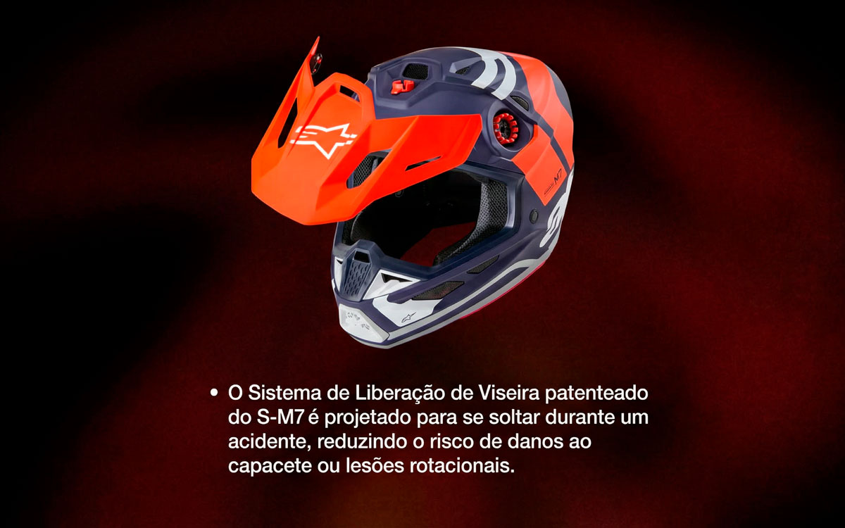 O SM7 é compatível com protetor cervical?Sim. O perfil da queixeira foi redesenhado com área base esculpida para aliviar a pressão sobre a clavícula, com revestimento de EPS mais macio que se estende além do casco e é coberto por composto de borracha flexível. Isso permite encaixe natural com os principais modelos de protetor cervical do mercado.