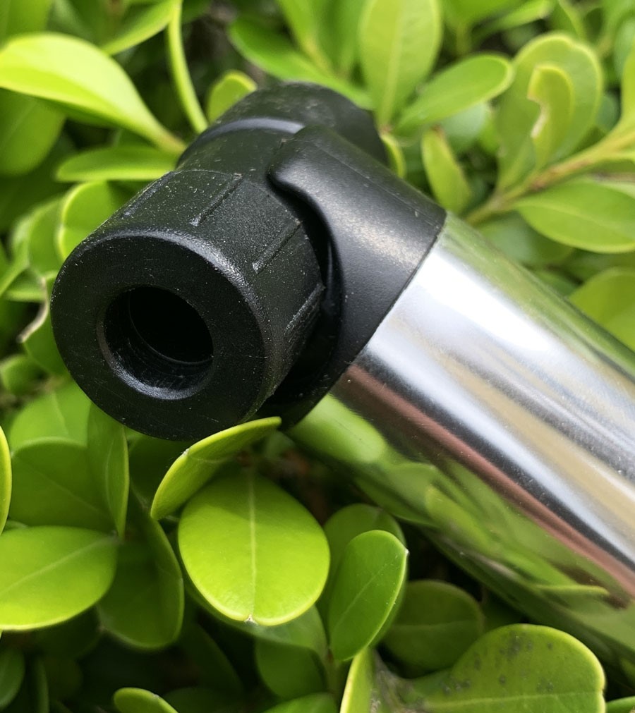 • Bico duplo - atende válvulas Presta® (bico fino) e Schrader® (bico grosso - mesmo bico de carros e postos de gasolina) sem a necessidade de adaptadores