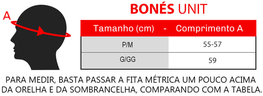 Fique por dentro das medidas do Boné Unit Ignite: