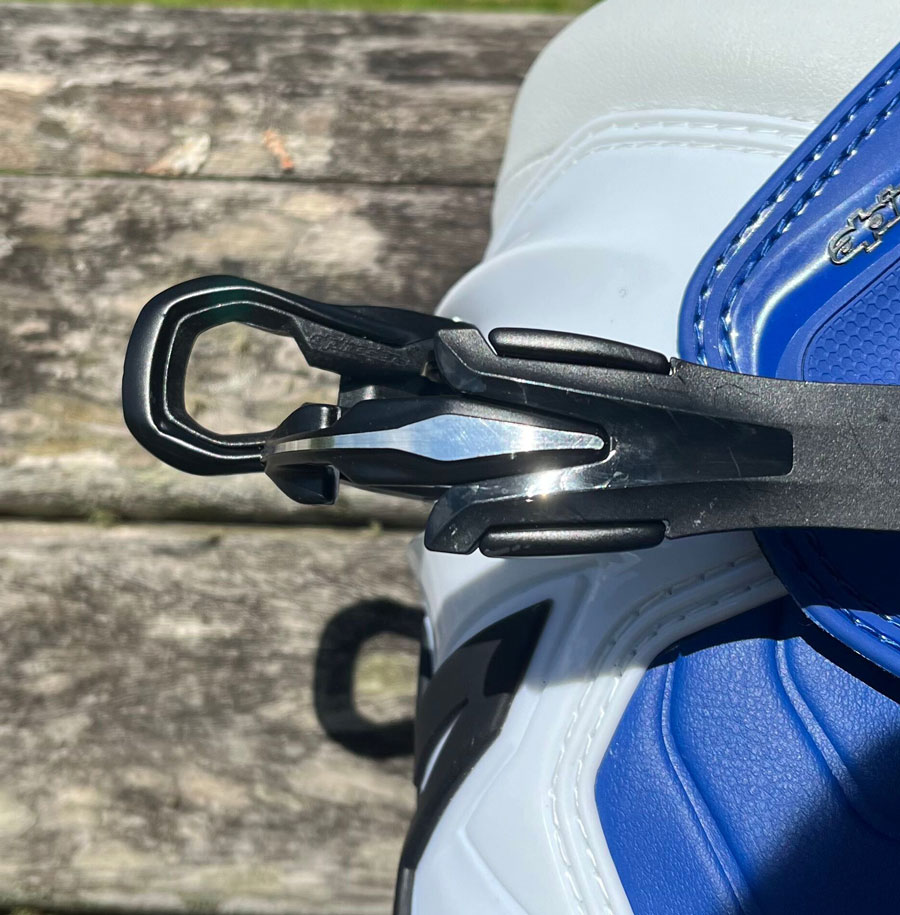 Para maior absorção dos impactos, o sistema DHCP (Dynamic Heel Compression Protector) auxilia a reduzir significativamente o efeito da energia excessiva gerada pelos impactos e ajudando a diminuir lesões. O novo sistema de fechamento, possui travas em alumínio de alta resistência à impactos e sistema de abre/fecha que se alinha automaticamente com a trava, otimizando o ajuste e a fixação, garantindo mais segurança e muito mais qualidade com a tradição Alpinestars.