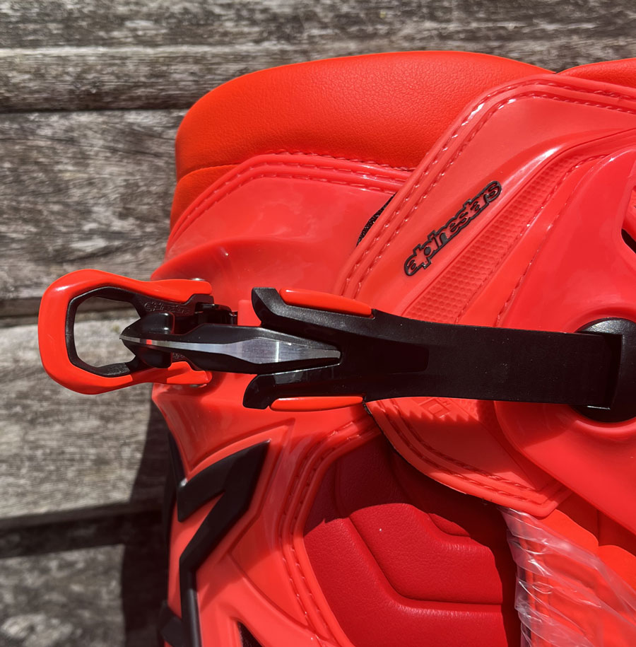 Para maior absorção dos impactos, o sistema DHCP (Dynamic Heel Compression Protector) auxilia a reduzir significativamente o efeito da energia excessiva gerada pelos impactos e ajudando a diminuir lesões. O novo sistema de fechamento, possui travas em alumínio de alta resistência à impactos e sistema de abre/fecha que se alinha automaticamente com a trava, otimizando o ajuste e a fixação, garantindo mais segurança e muito mais qualidade com a tradição Alpinestars.