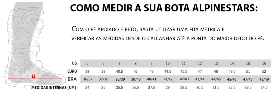 Confira as medidas da Bota Alpinestars Tech 3 Enduro: