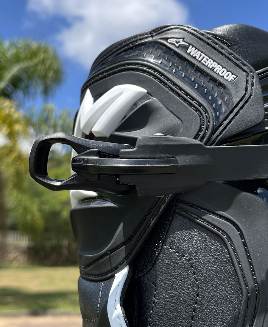 A parte superior conta com fechamento com Velcro®, que oferece muito mais praticidade. Já na lateral interna, o anti chamas da Bota Alpinestars Tech 3 Enduro garante resistência ao calor das peças do motor, além de atritos contra o tanque de combustível e o banco