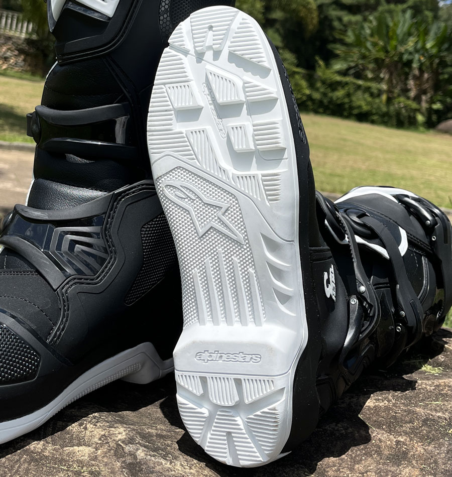 Composto por tecnologia exclusiva Dual Active Ankle Brace®, o solado da Bota para Enduro Alpinestars Tech 3 WP possui uma placa de aço colocada internamente, que aumenta a resistência contra a pressão da pedaleira e a aderência de forma considerável, é especialmente projetado para caminhar caso seja necessário descer da moto.