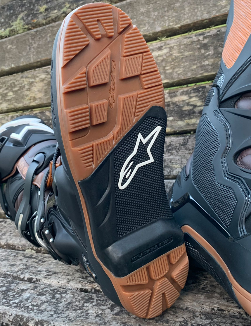 O solado injetado da Bota Alpinestars Tech 7 Enduro é capaz de suportar os mais variados atritos entre as pedaleiras, pedais e eventuais batidas, proporcionando assim maior durabilidade e conforto em qualquer situação de pilotagem ou até mesmo para caminhadas.
