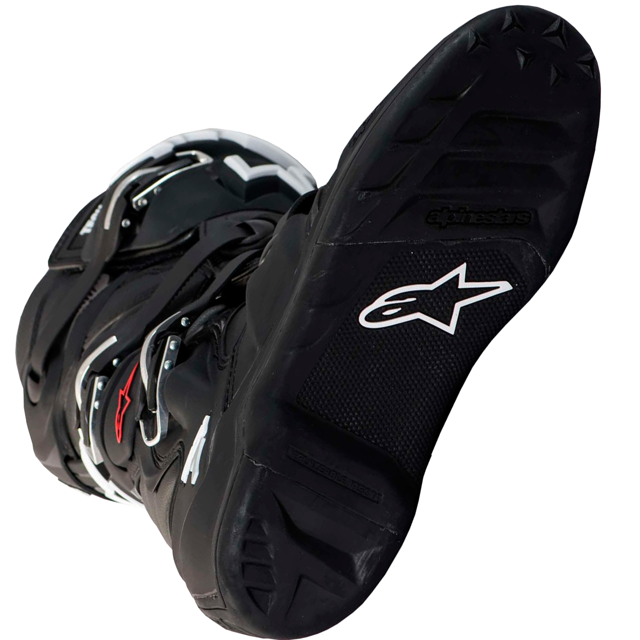Produzida com solado injetado, a Bota Alpinestars Tech 7 é capaz de suportar os mais diversos atritos entre as pedaleiras, pedais e eventuais batidas, garantindo assim muito mais durabilidade e conforto em qualquer situação e até mesmo durante caminhadas. A composição do solado é totalmente estruturada em uma base de multi densidades totalmente integrada à todo o sistema de proteção. E para maior conforto e proteção, a palmilha em eva anatômico auxilia ainda mais a gerar conforto para os pés, bem como  possibilitar maior controle para a pilotagem ao máximo em qualquer modalidade. Com certificação internacional, a proteção oferecida pela bota Alpinestars para motocross é única, incorporando muito mais qualidade para sua pilotagem em qualquer nível e modalidade.