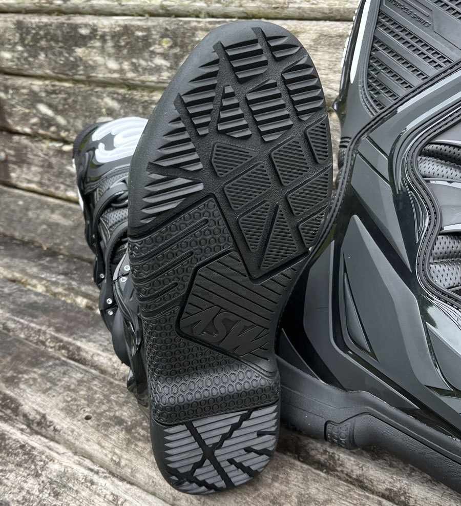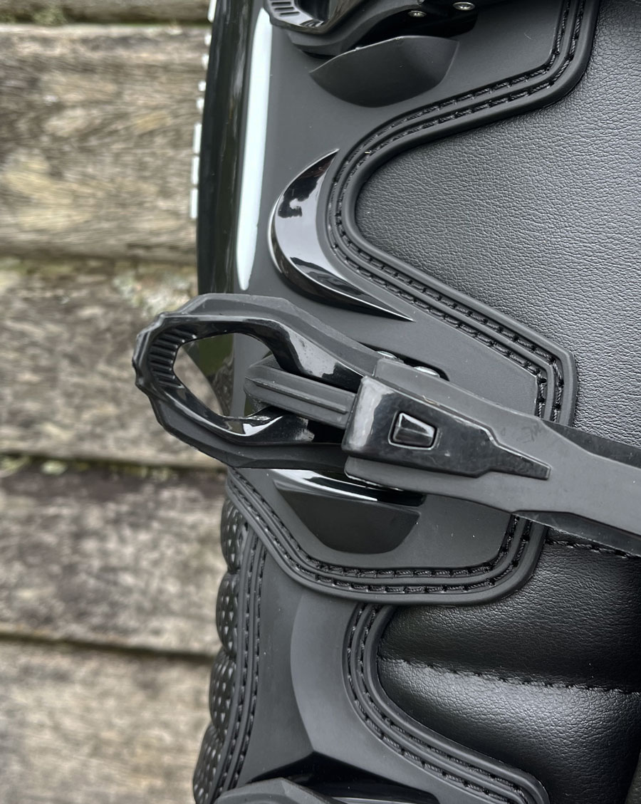 A parte superior do pé esquerdo conta com reforço para minimizar a intensidade de uso nas trocas de marchas, ajudando ainda mais na durabilidade.