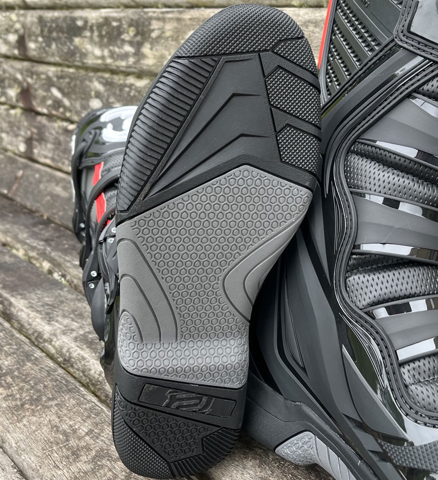 A parte superior do pé esquerdo conta com reforço para minimizar a intensidade de uso nas trocas de marchas, ajudando ainda mais na durabilidade.