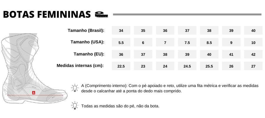 *Confira as Medidas da Bota Feminina Alpinestars Stella SMX 6 V3: