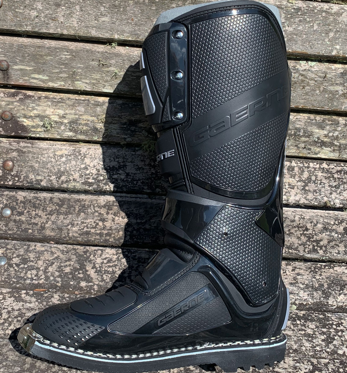 Com um segundo pivô, a Bota Gaerne SG 12, possui o posicionamento fixo em um sistema deslizante, similar ao de gavetas, que possibilita uma sensação mais natural de uso durante as trocas de marchas ou frenagens.