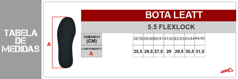 Quais as medidas ideais para a Bota Leatt 5.5?