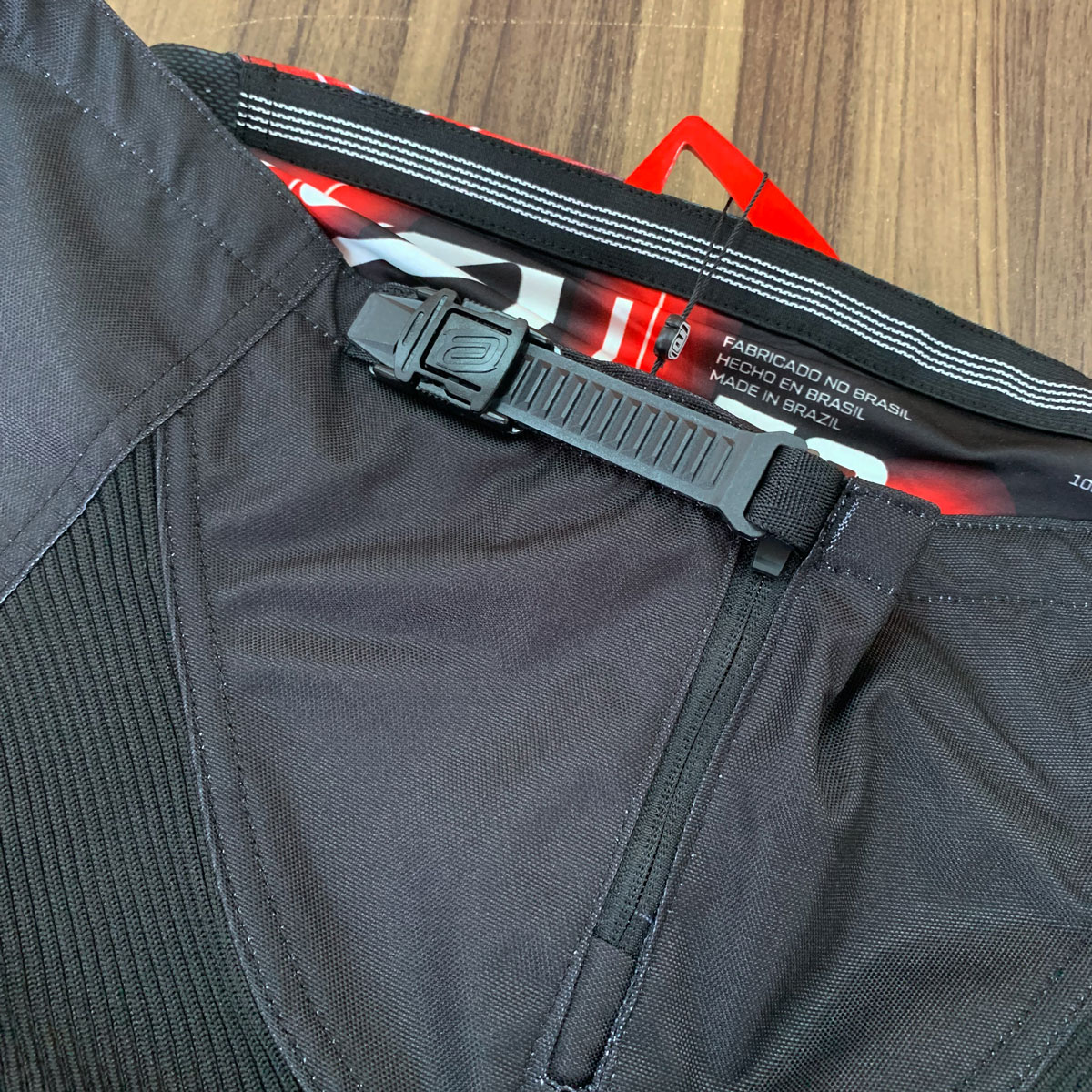 Assim como na camisa, o tecido é totalmente tratado com tecnologias que favorecem o conforto e a proteção, ajudando a manter a qualidade por mais tempo de pilotagem até mesmo nos dias mais quentes.