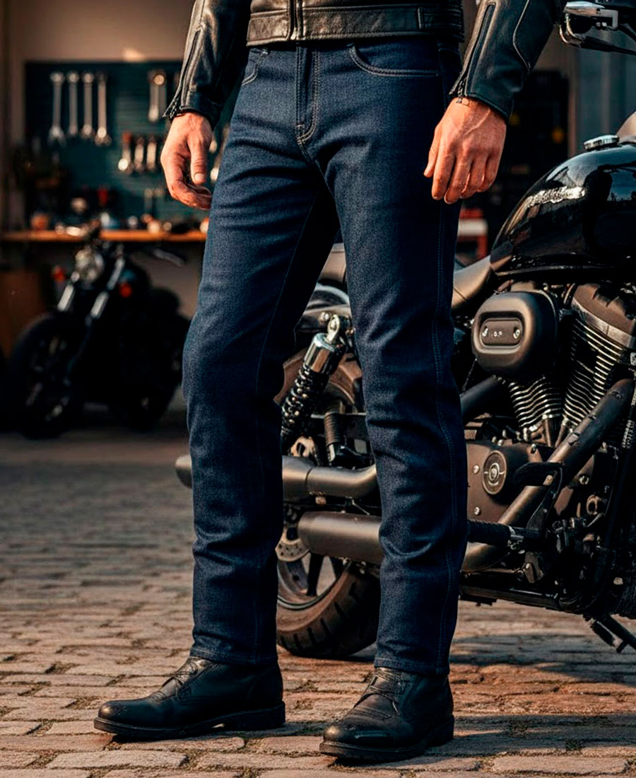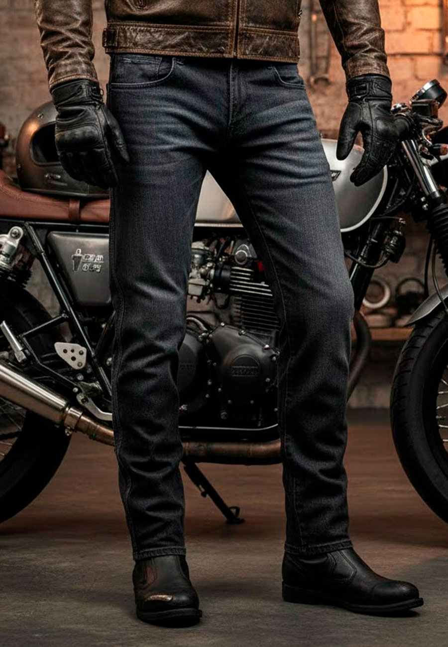 • Composição de alta qualidade - em tecido denim elástico, garante resistência, conforto e alta mobilidade para realizar os movimentos sob duas rodas