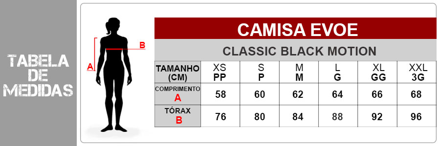Fique por dentro das medidas da Camisa Feminina Evoe Classic Black Motion: