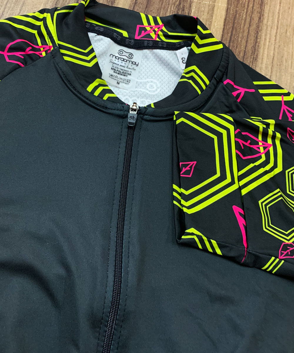 Contado com 3 bolsos traseiros, a Camisa Feminina Marcio May Sport Black Geometric permite carregar mini ferramentas, géis de reposição, chaves, documentos e até celulares de telas com tamanho de 5,5 polegadas, para garantir ainda mais praticidade para andar de bicicleta em diferentes modalidades.
