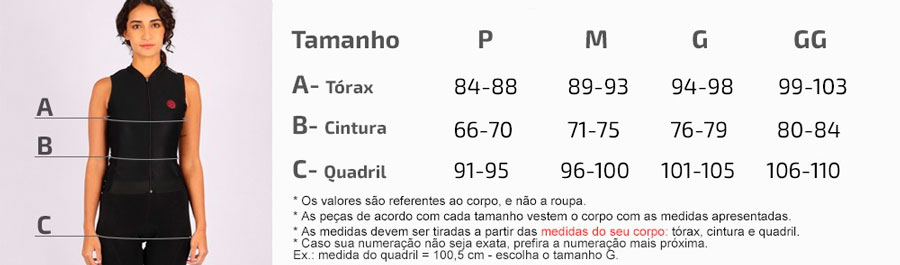 • Cintura com elástico - impede que a camisa fique subindo mesmo em maiores rotações