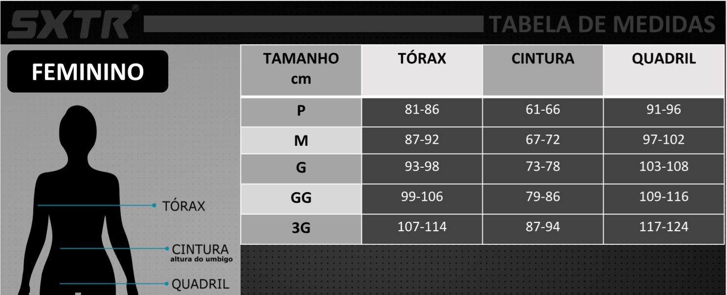 Saiba quais são as medidas da Camisa Feminina Sportxtreme Slim TC Belize: