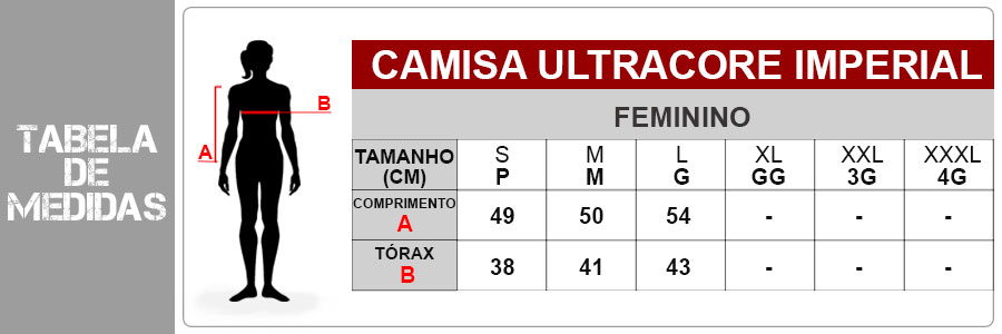 Qual a medida ideal da Camisa Feminina Ultracore Imperial Brazil?