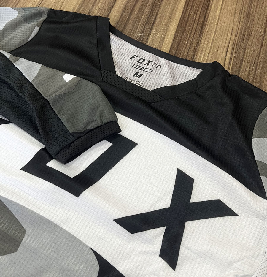 Com a barra traseira alongada, a Camisa Fox 180 BNKR Camo permite que a mobilidade sobre as pedaleiras seja muito maior, assim como a segurança ao ser colocada por dentro das calças de motocross