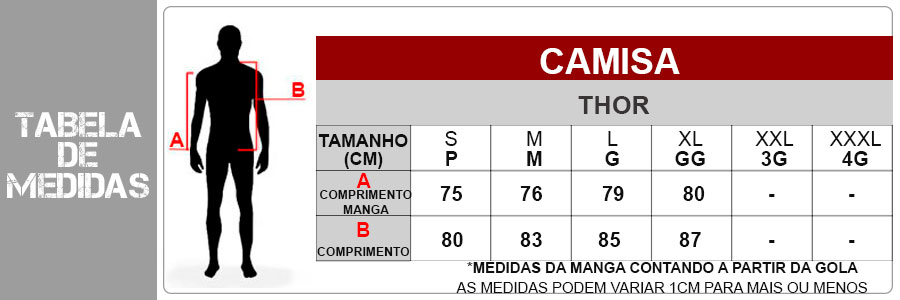 Confira as medidas da Camisa Thor Sector: