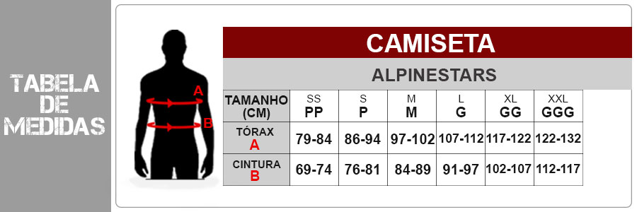 Confira as medidas da Camiseta Alpinestars One Oversized: