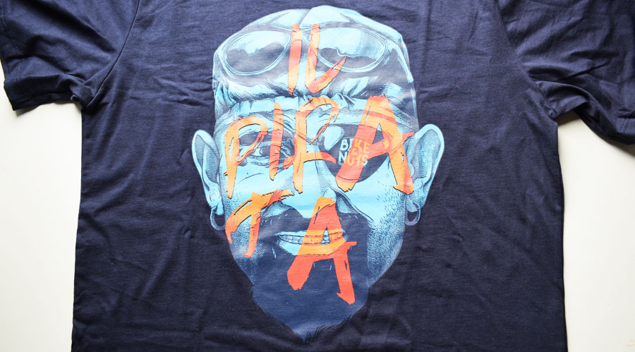 Produzida com acabamento diferenciado, a Camiseta Bike&Nuts Il Pirata, conta com a estampa que homenageia um dos maiores nomes do ciclismo mundial, o famoso Il Pirata - Marco Pantani que fez história em batalhas travadas pelas montanhas das grandes voltas nos grandes Tours no anos 90.