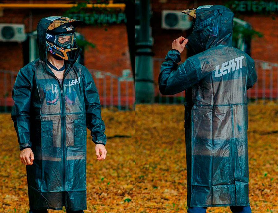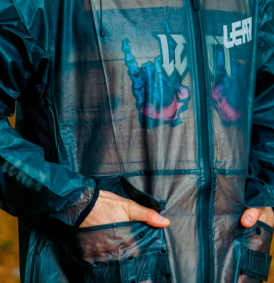 Diferencial no segmento de vestuário para motocross, a Capa de Chuva Leatt MudCoat possui tecido impermeável macio ao toque, proporcionando conforto mesmo nos dias mais frios ou chuvosos.