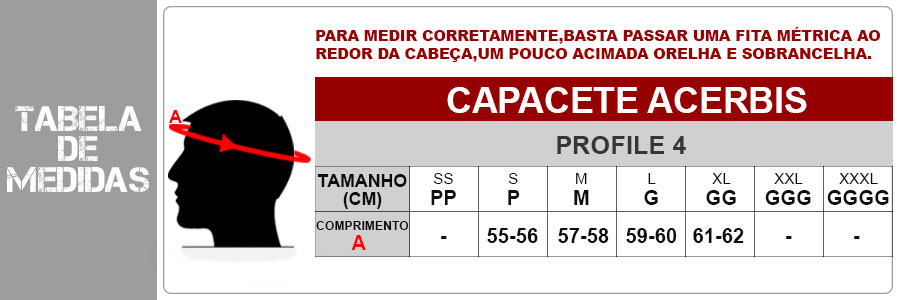 Qual a medida correta para o Capacete Acerbis Profile 4?