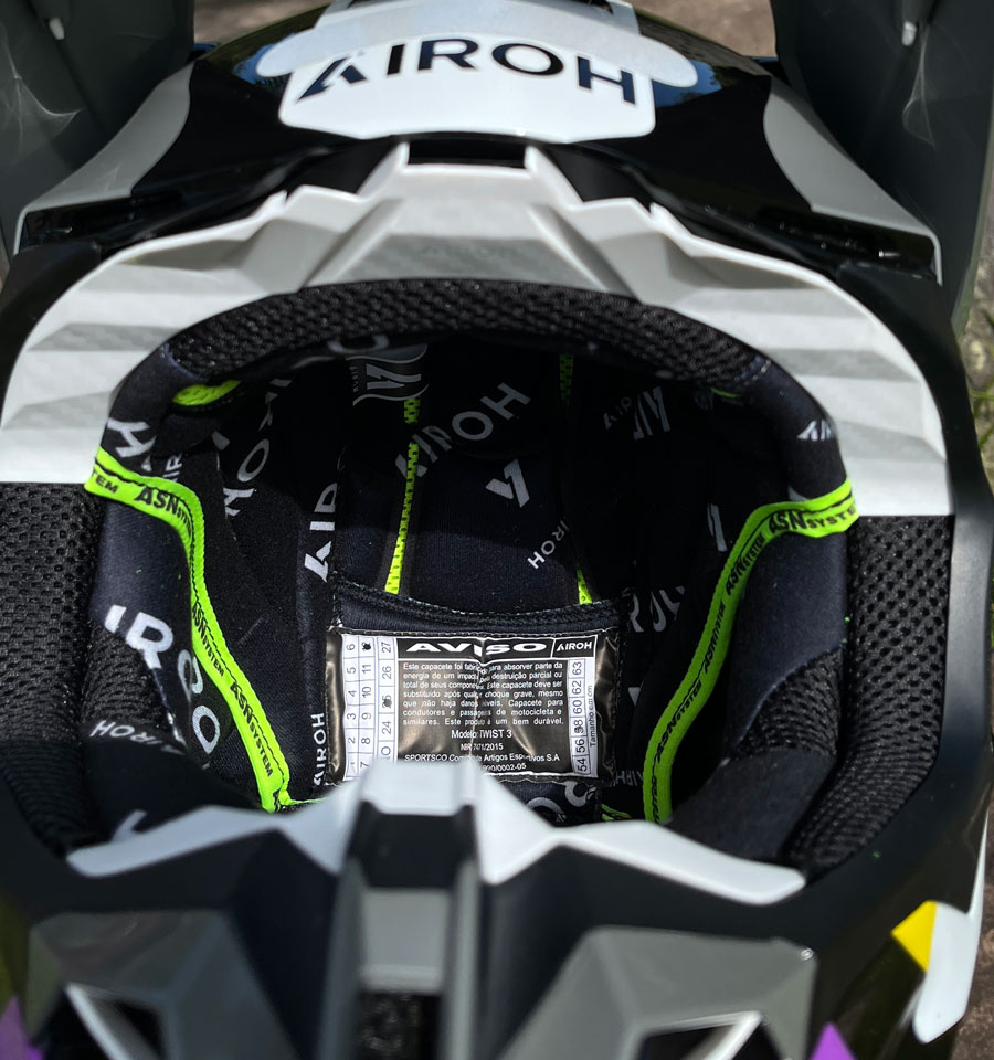 • Sistema ASN (Airoh Sliding Net) - tecnologia exclusiva que forma uma rede deslizante entre o forro e o EPS, ajudando a reduzir a força rotacional nos impactos angulares, oferecendo proteção extra para o cérebro em quedas fora do eixo