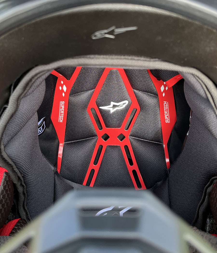 O sistema de ajuste A-Head é uma das maiores inovações do Capacete Alpinestars SM10, com três níveis de regulagem permitindo um ajuste preciso da altura e do ângulo do capacete em relação à cabeça do piloto, proporcionando um encaixe totalmente seguro e preciso.