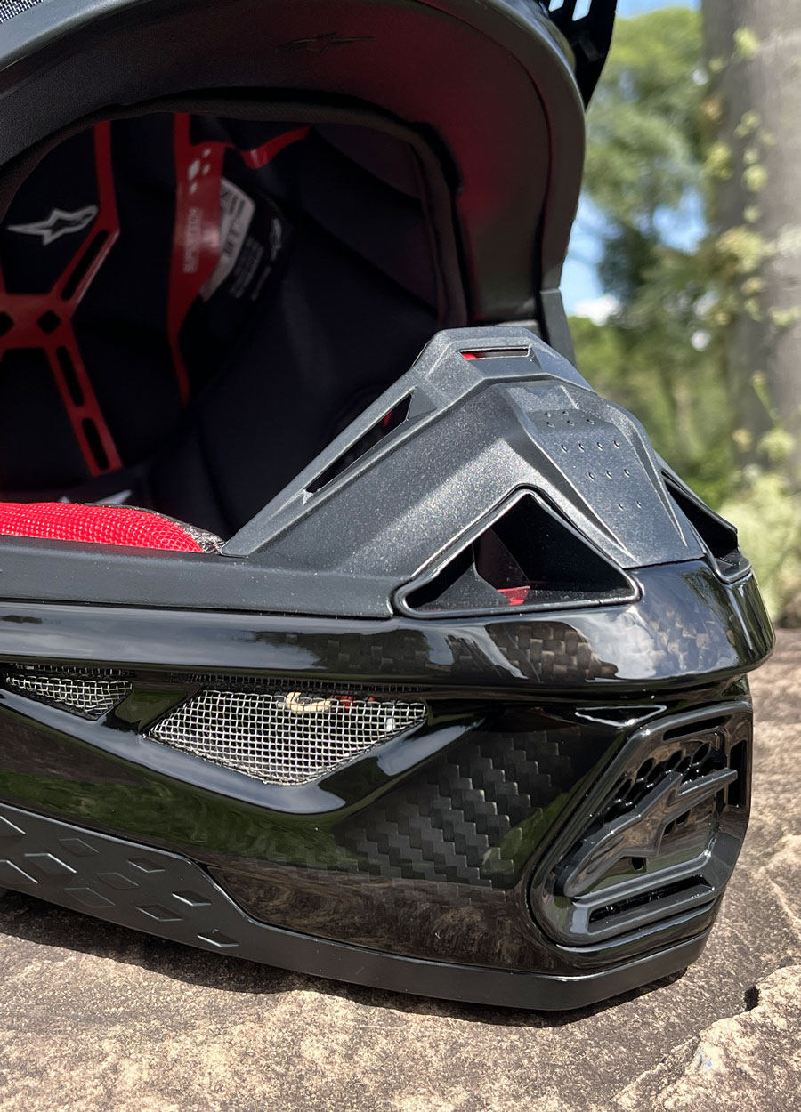 Já na área externa da queixeira, o Capacete Alpinestars SM10 possui um composto de borracha mais flexível, que reforça a segurança e também melhora o conforto, garantindo uma experiência mais ergonômica e alinhada às necessidades dos pilotos profissionais ou amadores.