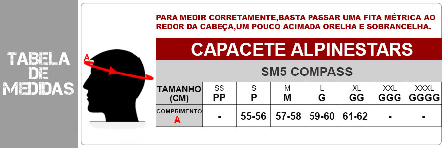Quais as medidas do Capacete Alpinestars SM5?