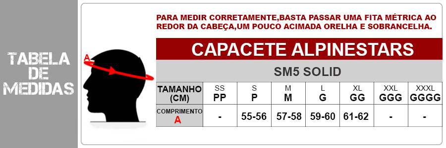 Quais as medidas do Capacete Alpinestars SM5 Solid?