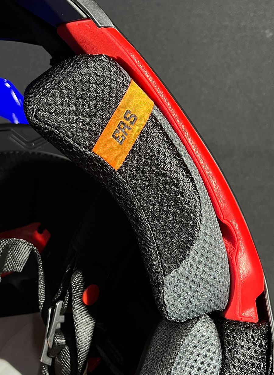 • Sistema de ejeção ERS® - permite que o capacete seja removido de maneira rápida e segura, sem causar desconforto ou danos ao piloto