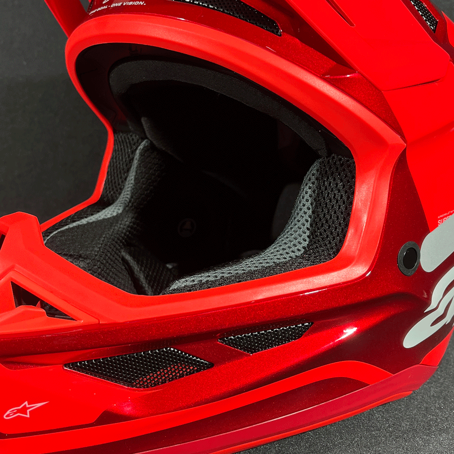 Ele reduz a aceleração rotacional transmitida à cabeça em até 76%, graças ao seu revestimento específico da Alpinestars, consolidando-se como um dos capacetes off-road mais seguros e tecnicamente avançados da categoria.