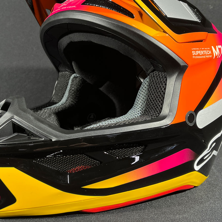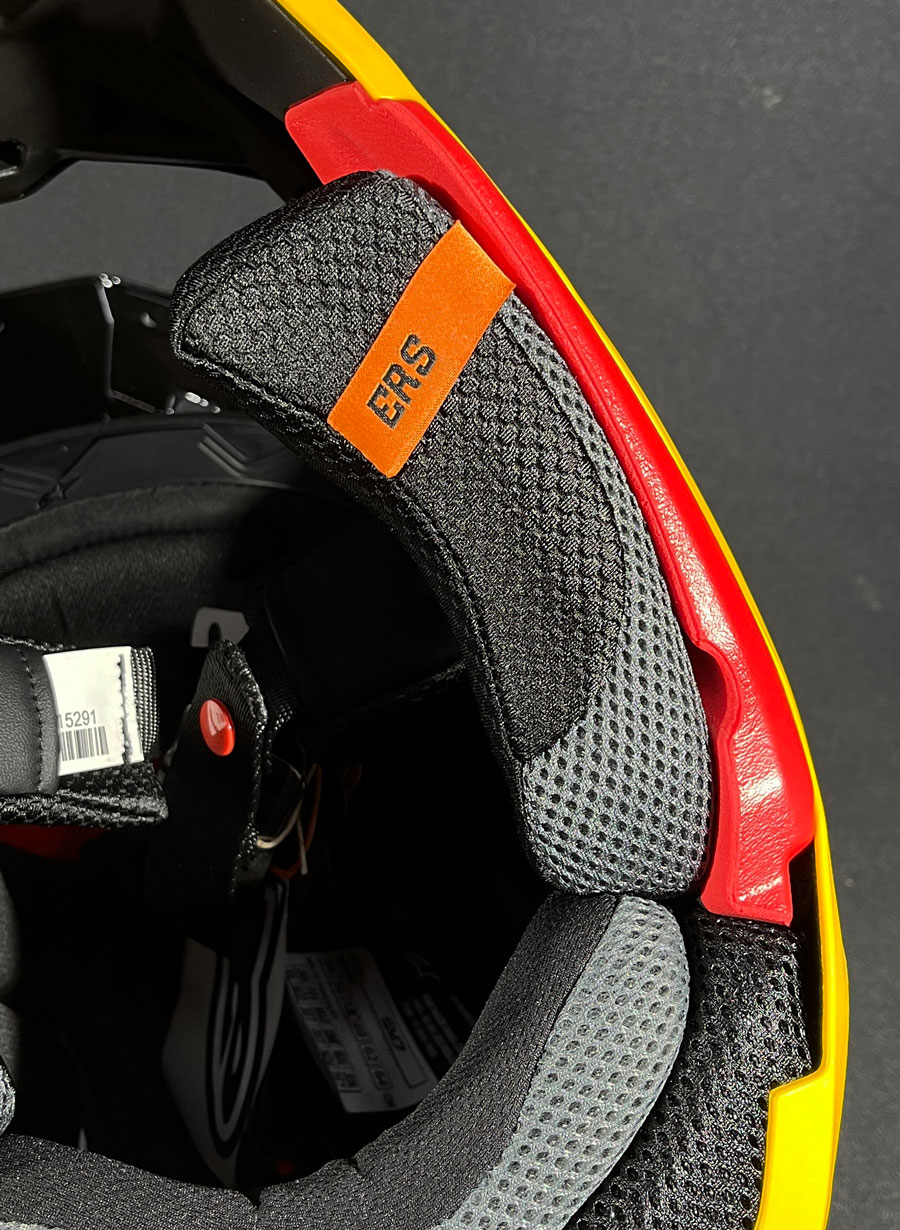 Ele reduz a aceleração rotacional transmitida à cabeça em até 76%, graças ao seu revestimento específico da Alpinestars, consolidando-se como um dos capacetes off-road mais seguros e tecnicamente avançados da categoria.