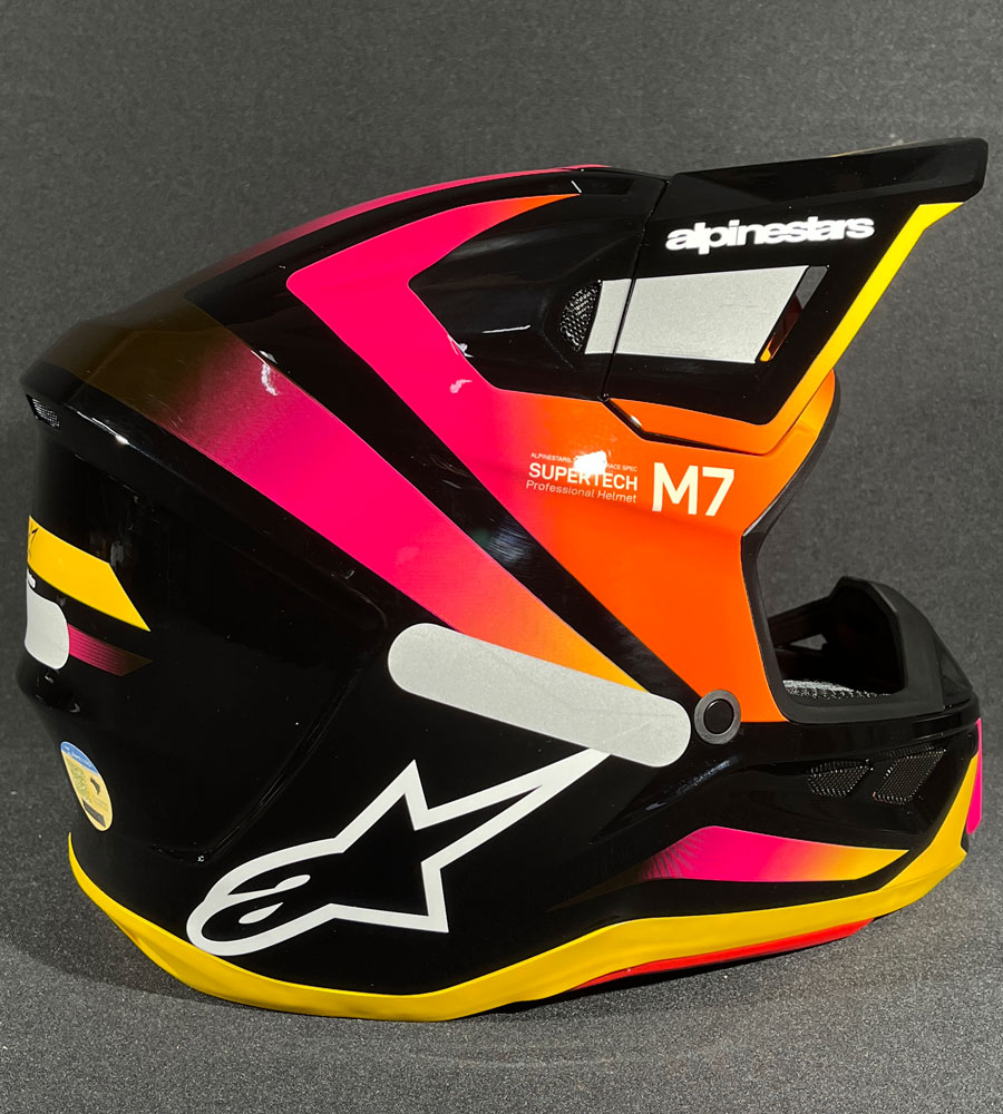 Capacete Alpinestars SM7 Rise é compatível com sistemas de hidratação, além de possuir sistemas de ejeção, sendo ideal para competições profissionais.