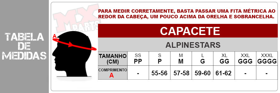 Confira as medidas do Capacete Alpinestars SM7 Rise: