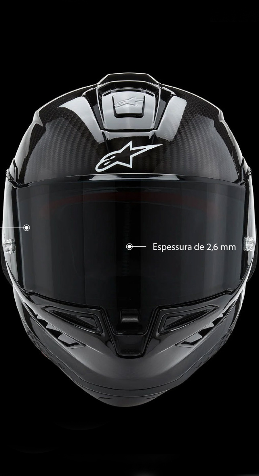Além disso, o Capacete Alpinestars Supertech R10 integra camadas de fibra de aramida e fibra de vidro, elevando a resistência e proteção da sua estrutura, aumentando ainda mais a segurança do piloto em qualquer situação.