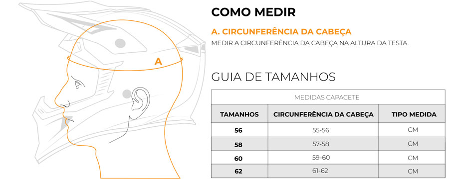 Confira as medidas do Capacete ASW Fusion 2.0 Relay: