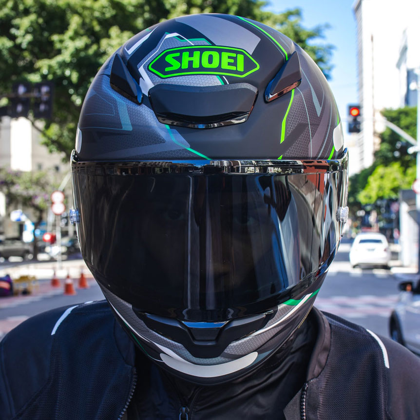 Capacete on-road Shoei NXR2 foi produzido em túnel de vento para oferecer o mínimo de resistência e o máximo de estabilidade, reduzindo o arrasto em velocidades elevadas, auxiliando a minimizar a fadiga em pilotagens esportivas e urbanas.