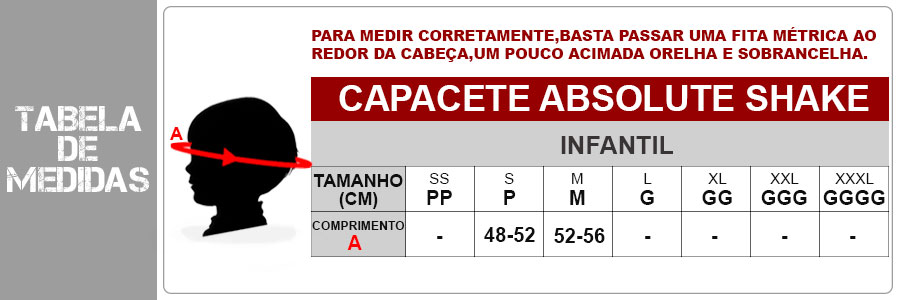 Confira as medidas do Capacete infantil Absolute Shake Unicórnio: