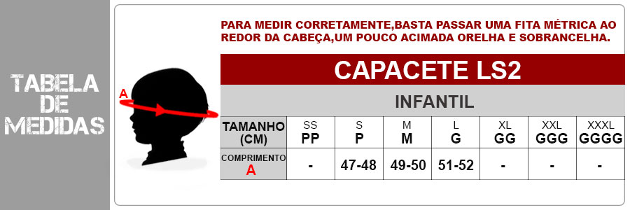 Se liga nas medidas do Capacete Infantil LS2 FF812 Kid: