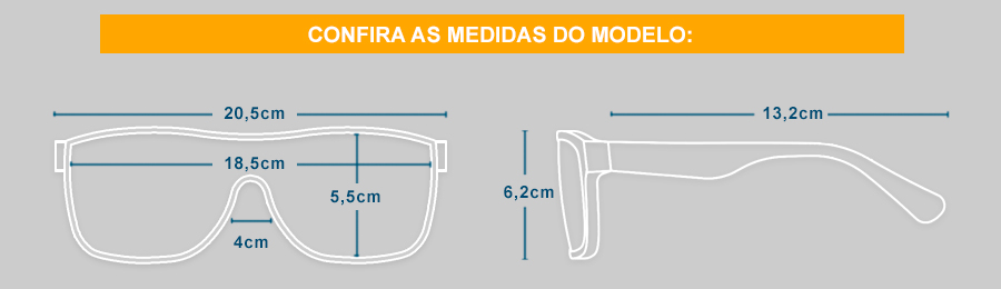 * A Largura da lente é superior ao da armação devido ao modelo ser com lente curva.