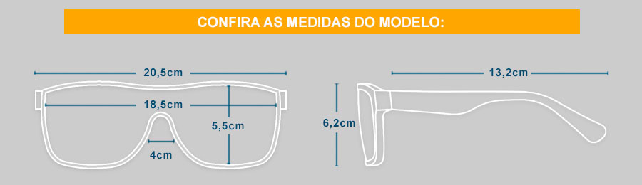 * A Largura da lente é superior ao da armação devido ao modelo ser com lente curva.