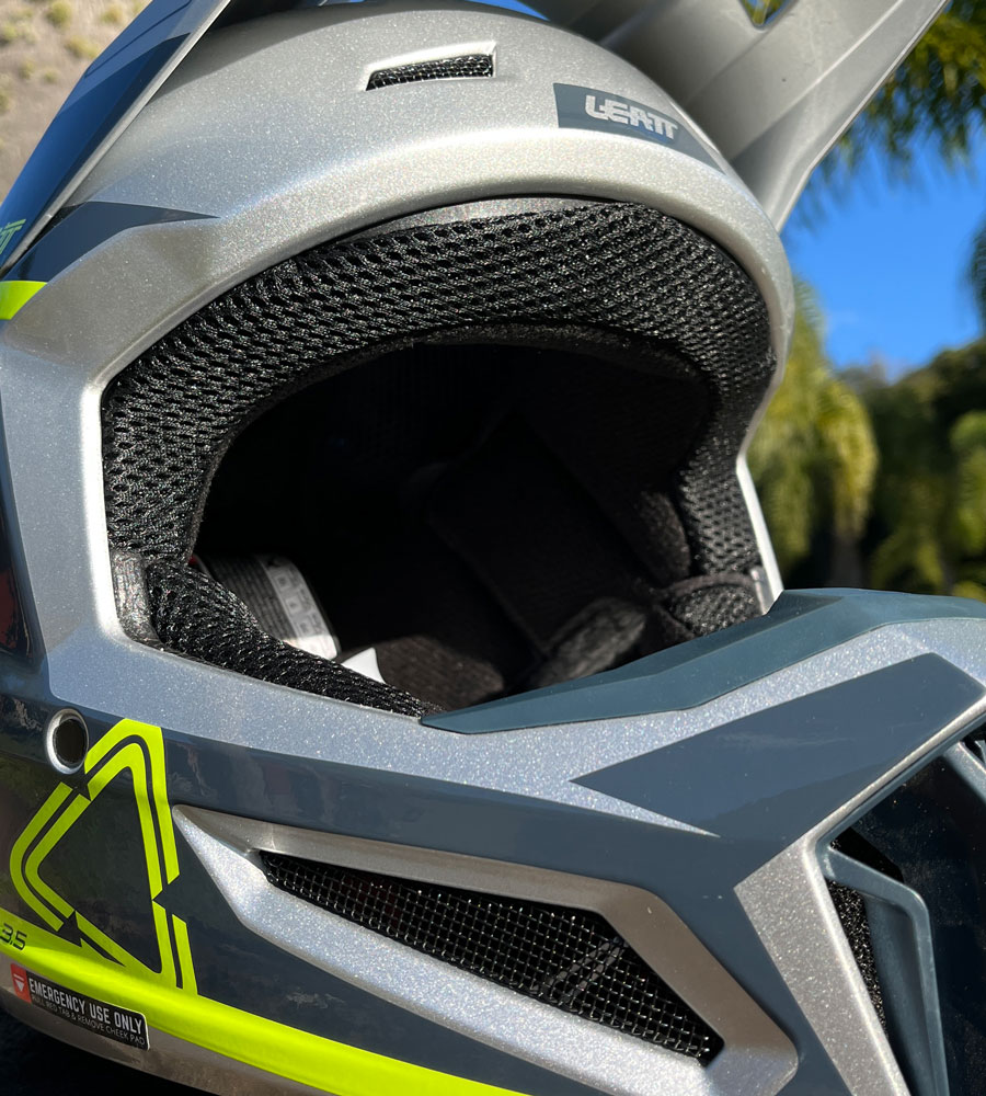 O interior do Capacete para motocross Leatt 3.5 conta com forração tratada, que favorece o conforto em qualquer intensidade graças aos seus tratamentos de controle térmico, de umidade e anti odores, além de fácil remoção para a lavagem, garantindo assim muito mais durabilidade para o uso e qualidade do seu capacete.